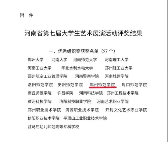 作为此次活动的承办单位,在校领导的大力支持下,我校圆满完成了河南省第七届大学生艺术展演系列活动的各个环节工作,得到了上级部门及兄弟院校的高度评价。