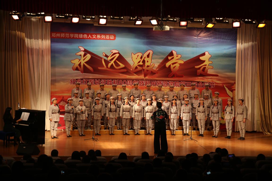 为纪念中国工农红军长征胜利80周年,传承和弘扬以爱国主义精神,培育和践行社会主义核心价值观,充分发挥校园文化的育人功能,我校于10月21日在西校区七号楼报告厅,举行“永远跟党走 —纪念红军长征胜利80周年”合唱比赛。