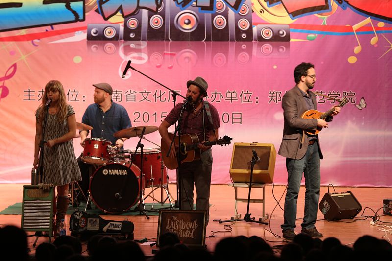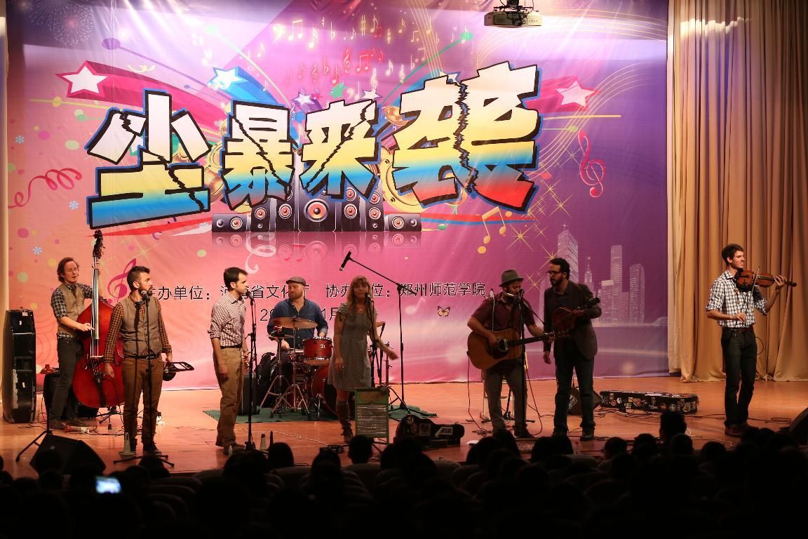 11月10日晚,由省文化厅主办,郑州师范学院协办的美国“尘暴”乐队中国巡演—郑州师范学院站在我校7号楼报告厅精彩上演,副校长蒋丽珠和省文化厅外事处相关领导及我校相关部门负责人、师生代表600余人观看了本场演出。演出开始前,副校长蒋丽珠代表我校向乐队负责人赠送了礼品。